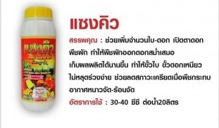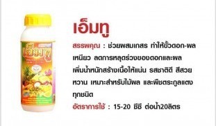 สรรพคุณ : ช่วยผสมเกสร ทำให้ก้านขั้วหนียว ลดการหลุดร่วงดอก และผล ได้เป็นอย่างดี ควรใช้ต่อเนื่อง คู่กับ แม๊กวัน ยิ่งได้ผลดี ควรใช้เอ็มทู